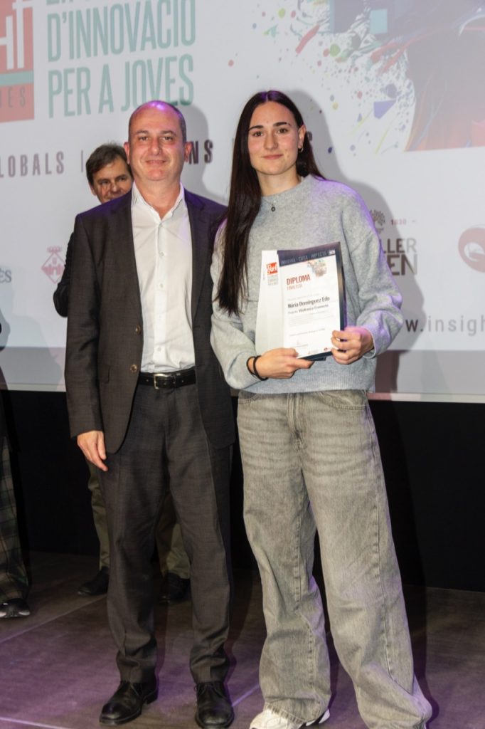 Premi especial per la lluita contra el canvi climàtic (1.000 €): Biosensor de l’Oïdi, d’Aina Jodar i Roland Macias. Una innovadora eina biotecnològica que detecta precoçment l’estrès de la vinya, millorant la resistència a malalties com l’oïdi i contribuint a una viticultura més resilient i respectuosa amb el medi ambient. Aquest projecte interdisciplinari combina ciència, tecnologia i sostenibilitat per donar resposta a un dels grans reptes del sector ja que l’augment de la temperatura mitjana (2–3 °C) i la reducció de les precipitacions estiuenques poden ampliar la finestra temporal favorable al desenvolupament de fongs. Aquesta detecció avançada permet reduir l’ús de productes fitosanitaris, optimitzar els tractaments i avançar cap a una viticultura més sostenible, resilient i adaptada a l’impacte del canvi climàtic.